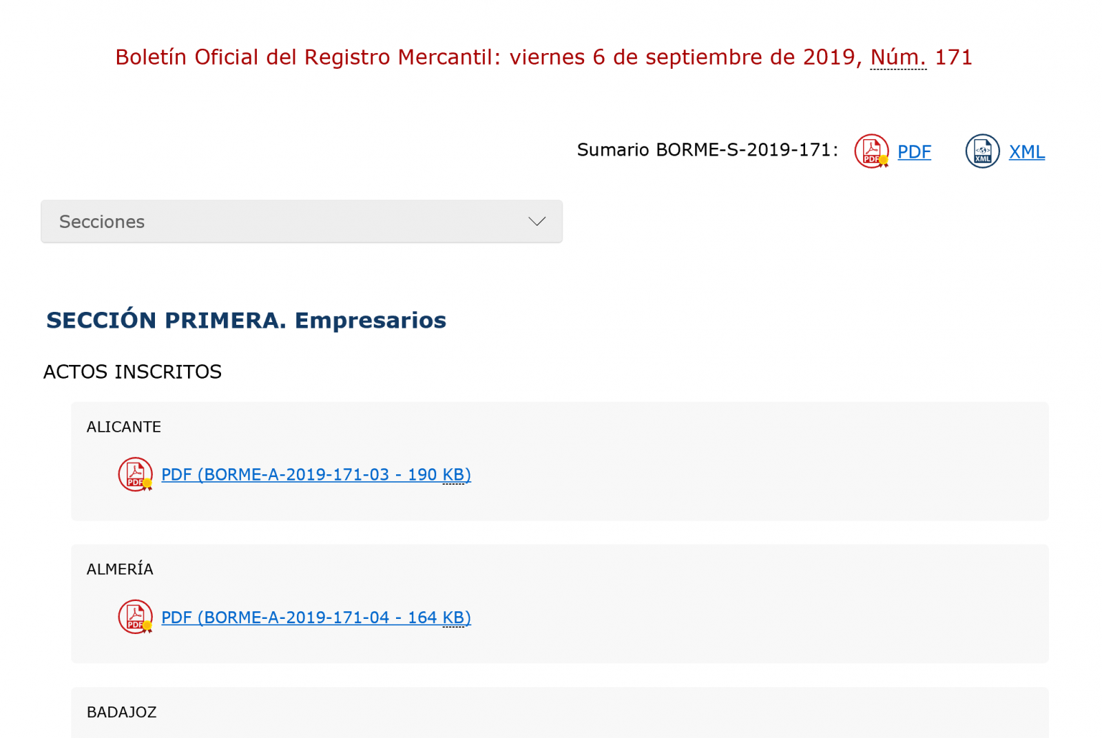 .- BORME - Sección Primera o de “Empresarios”: