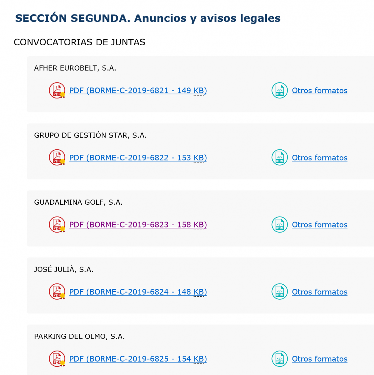 .- BORME - Sección Segunda: Anuncios y avisos legales